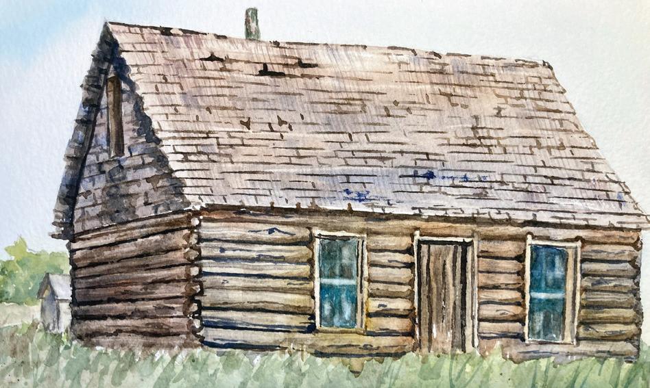 Rendering of the log home where Lou was born in Saskatchewan.