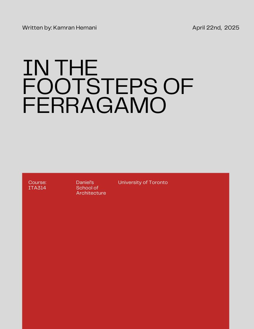 Salvatore Ferragamo’s story, as depicted by Dr. Pieri (the Director of the Ferragamo Museo in Florence) highlights a powerful intersection of innovation, artistry, and resilience within Italian fashion. In this paper, I will discuss his journey, legacy, and how he has further informed my own path in architecture and design. At an inflection point in the 20th century, Italy resembled a fabric. One that was stitched together by regional craftsmanship, each thread representing the artisanal traditions that held the nation’s identity in place. French couture reigned over Italy for quite awhile, however situated in the quiet southern village of Bonito, Salvatore Ferragamo was born. Amongst 13 siblings, Ferragamo found his calling in a shop across the street that specialized in the art of shoemaking. At the remarkable age of nine, he composed his first pair of shoes for his sister.