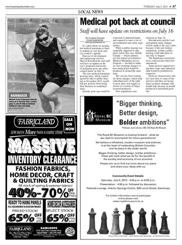 Medical pot back at council Staff will have update on restrictions on July 16 By Andrea Klassen STAFF REPORTER andrea@kamloopsthisweek.com