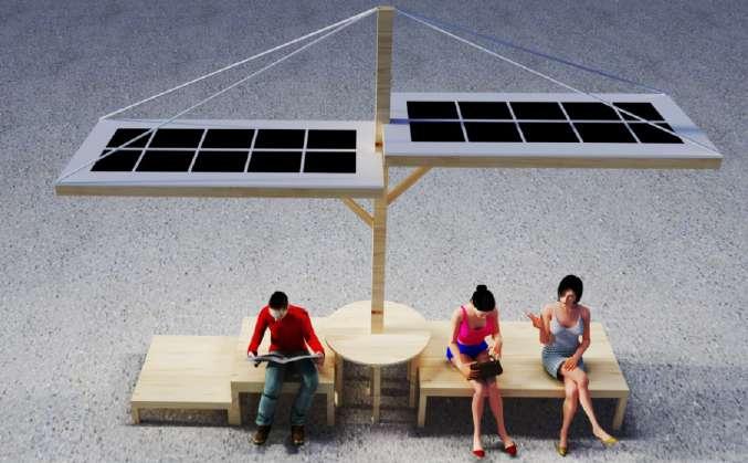 The design is solar Energy equipped street furniture to suit today’s requirement of electronic equipment usages amongst youngsters and office going people, the main focus of the design is to provide seating arrangement with solar lightng & power points for charging. The above solar panel acts as a shading device as well as power generation.