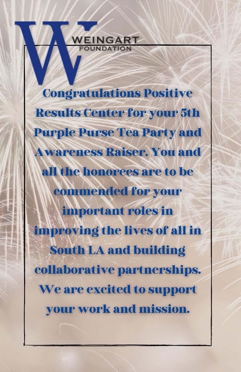 ThankyoutoourSponsors AllFamiliesMatterCounselingCenter, AMAAD BackToTheBasics Bernard&ShirleyKinsey BlackWomenForWellness ChangeReaction CommunityActionPartnership CouncilmemberCurrenD.Price,Jr. CouncilmemberMarqueeceHarris-Dawson KaiserPermanenteFoundation Kinta&MatthewGates LifeIsAJourneyOfEscapes MorrowMeadows PurposeYouthFoundation SanctuaryofHope SheedyCounseling SheReadyFoundation SoCalGas SouthernCaliforniaI .B.E.W–N.E.C.A SupervisorHollyMitchell TribeOfPurpose UnionBank WeingartFoundation CarolynChristianHines,InHonorof SonjaRoseNiles