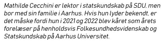 undres over, at Mathilde ikke er blevet tilbudt en fast stilling på Aarhus Universitet, primært på grund af hendes store popularitet blandt de studerende.