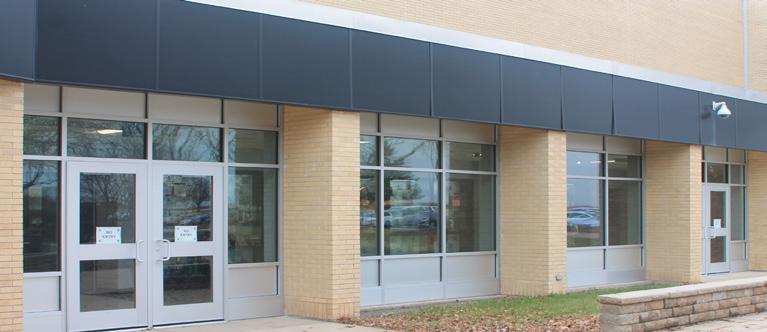 Outside of the East Gym, the wall has been replaced by windows and doors. The project took longer than expected due to supply chain issues.