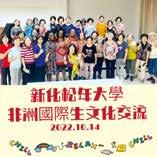 【賀】計畫通過2022 USR EXPO 「USR TALK表演」入選根與 芽非洲鼓隊將登上今年USR EXPO的表演舞台(11月19日 -20日台北松山文創園區 見),再次以鼓聲傳遞多元 文化,用熱情展現生命力。 2022.10.10雙十連假首日「玄 天守護、歸仁平安」活動 相挺支持歸仁區公所舉辦的活 動,共同促進建立韌性安全社 區,防災減災避災為要。 2022.10.17韌性社區活動在歸仁教會 長榮大學陳安妮老師安排長者進行 快走打棒球賽,第一階段課程安全認 知裝備,學習以正確肌肉及關節部位 傳接球;提醒重心移動、膝蓋下肢 動作的正確以避免運動傷害。 111.10.17 好拾光讀書會 - 【蘆筍的 百變魔法】 十月份的讀書會,由歸仁青農偉聖分 享經營農場的心路歷程以及農場種植 的4號品種蘆筍知識~與大家分享其中 一個小知識:蘆筍一種下即可以種10 年喲! 2022.10.12巴克禮公園講座老鷹想趴 長榮大學大武崙社區辦公室 與巴克禮永續經營協會,共 同舉辦第六場生態文化講座 ,邀請鄭惠陽老師分享鳳頭 蒼鷹的追鷹日記。 2022.10.12 美國喬治亞州多拉維爾市 代表參訪長榮大學,IPSD 學生以非洲 鼓聲,熱情歡迎貴賓的蒞臨。 2022.10.14「非」常好玩-非洲國際生 文化交流 在USR辦公室實習的IPSD四年級學生 Benica及Sindy至新化教會松年大學分 享坦尚尼亞及史瓦帝尼文化。Benica 介紹史瓦希里語及讓學員體驗穿著非 洲服飾;Sindy 與 Sebe盛裝介紹史瓦 帝尼服飾及各項配飾外,並帶來瓊麻 所製作的凡士林以及錢幣。 感謝愛・女孩 LOVE・BINTI與本 計畫的合作以及大家的支持。 2022.10.06 咖啡workshop IPSD大四學生Sindy 傳承這幾年來透過 USR計畫所學習的咖啡知識及技巧。透 過工作坊培力學生對咖啡有所認識, 翻轉在母國不常喝咖啡的現象。學習 太陽能電力煮咖啡、喝咖啡及如何煮 出一杯好咖啡。 2022.10.07大潭國小英文綠繪 本教學 長榮大學的國際生使用USR辦 公室跟墾管處合作出版的「灰 面鵟鷹的旅行」繪本做為教材 ,讓小朋友們從中學習到英文 表達與物種保育的重要性。 2022.10.09根與芽非洲鼓隊初 登場 -鹽水詩路 樂在表演,鼓樂+舞蹈+歌唱, 精彩演出受到台灣朋友的熱 情關注。 2022.10.03韌性社區活動在 歸仁教會 長榮大學陳安妮老師分享彈 力球運動,在運動前以恩典舞 及暖身運動,活絡身體以避免 運動傷害。 2022.10.04韌性社區活動 在中洲社區 長榮大學醫社健照學程曾 琳雲老師利用桌遊遊戲和 長者建立良好互動關係,透 過發問讓長者動動腦,活化 腦部功能。 USR x 綠能推廣—太陽能咖啡餐車 長榮大學長期關注地方環境議題 致力推動綠色大學與綠能社區。 為實踐環境永續理念,社區居民 與國際生激發構想,創造了「太 陽能咖啡餐車」。 影片連結:https://youtu.be/i7Y472Pdd7o