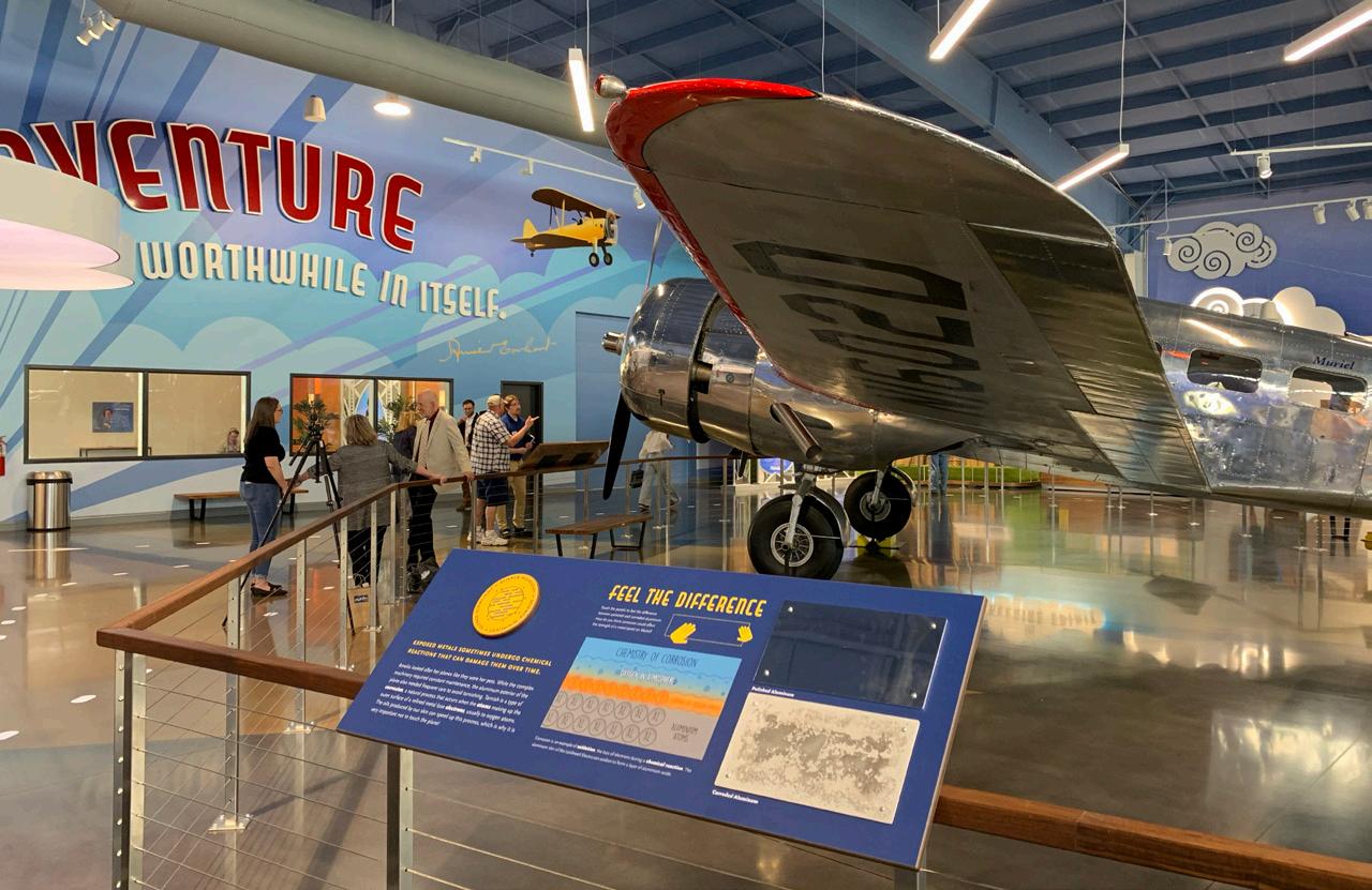 The new Amelia Earhart Hangar Museum in Atchison, which opened in April, offers an exciting new experience for those interested in Kansas aviation history. The impressive centerpiece of the museum, the restored Lockheed Electra 10-E, is named Muriel for Amelia Earhart’s sister Grace Muriel Earhart Morrissey. This museum provides a complementary experience with the Amelia Earhart Birthplace Museum in Atchison, listed in the National Register of Historic Places.