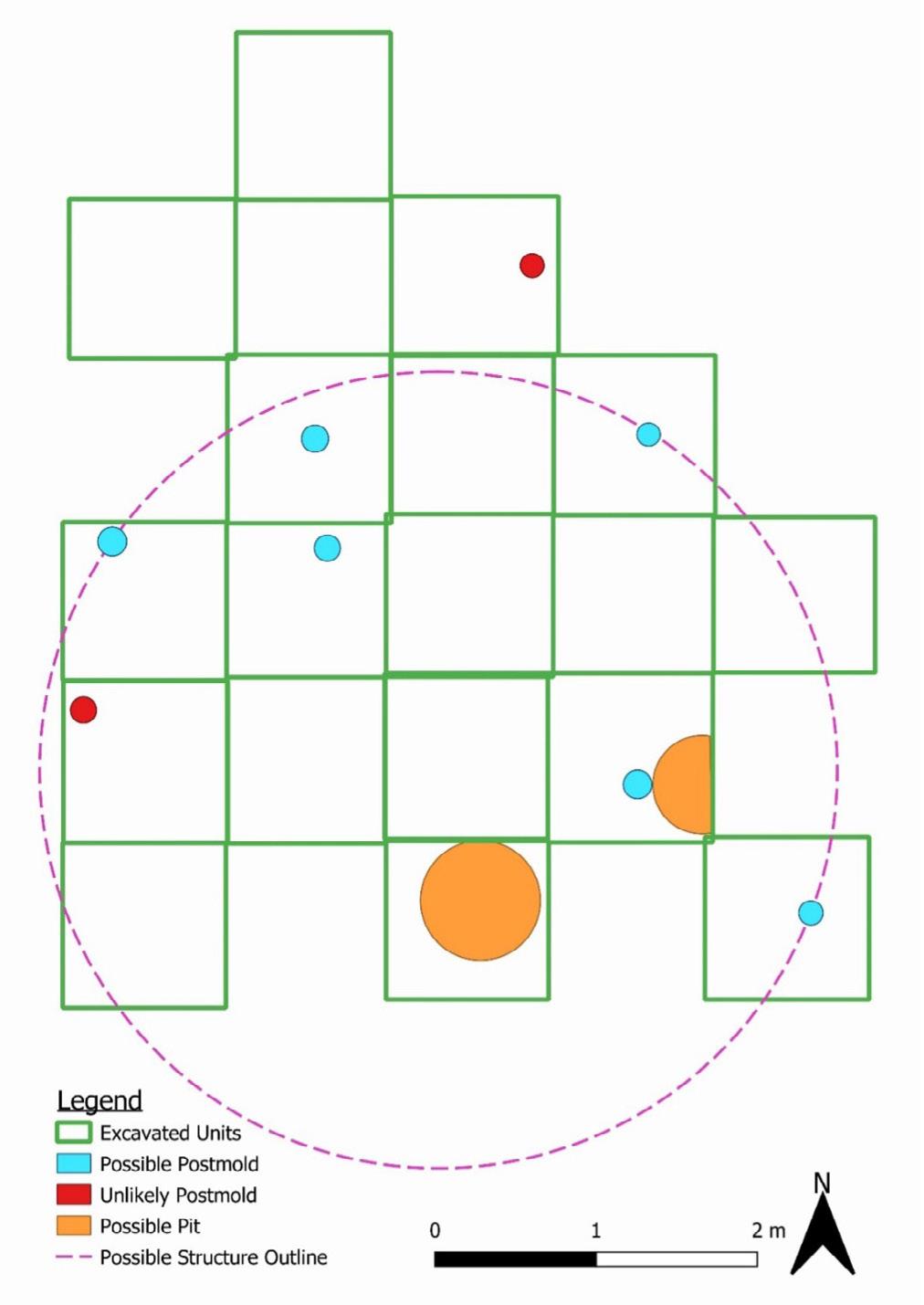 the lab washing, sorting, and cataloging the artifacts that were recovered. The excavations recovered limited artifacts but were rich in features, including eight possible post molds and two possible pits.