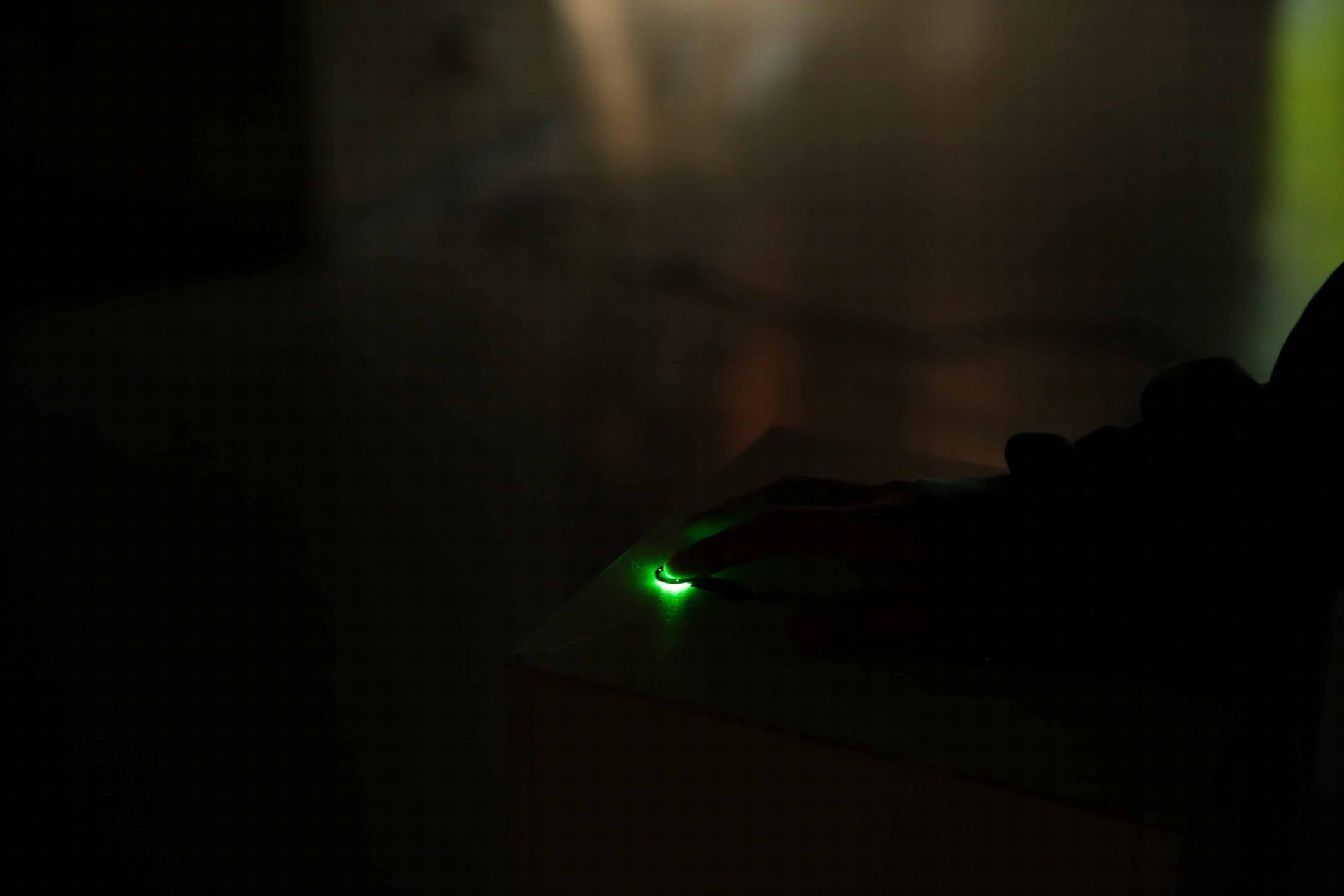 指をテーブル上のセンサーに置く