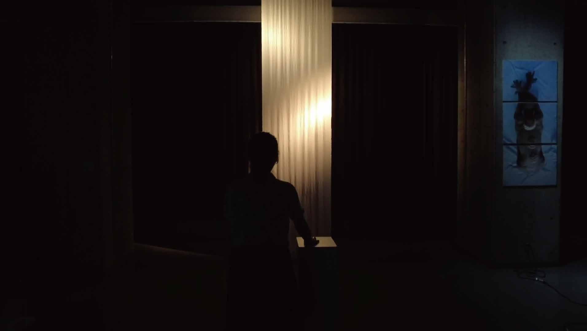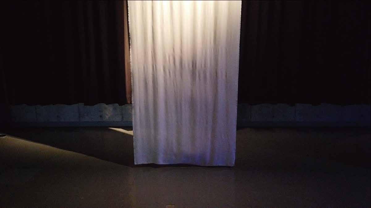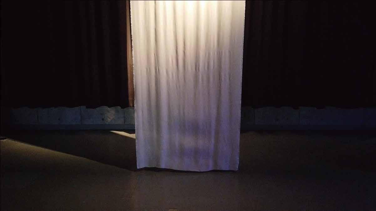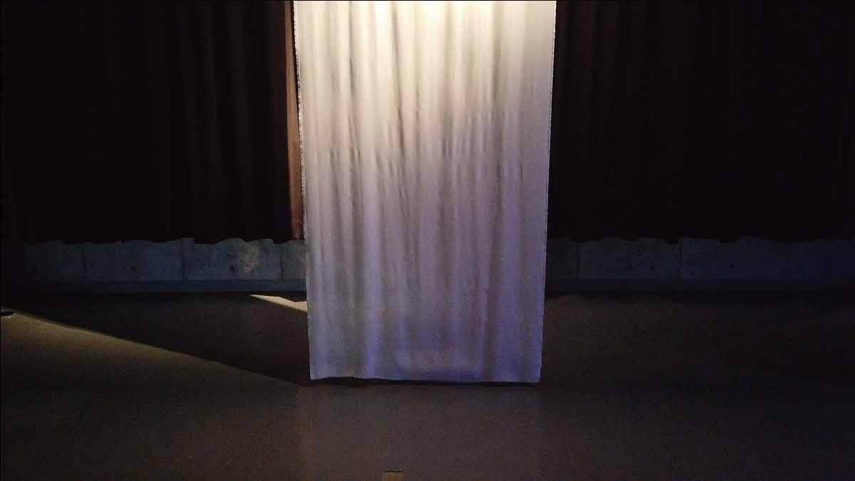 まず、寝ている時が一番平和な時間なの で、真っ白な布を使って寝室に静かで落 ち着いた状態を作り、観客に落ち着きを 与えたい。