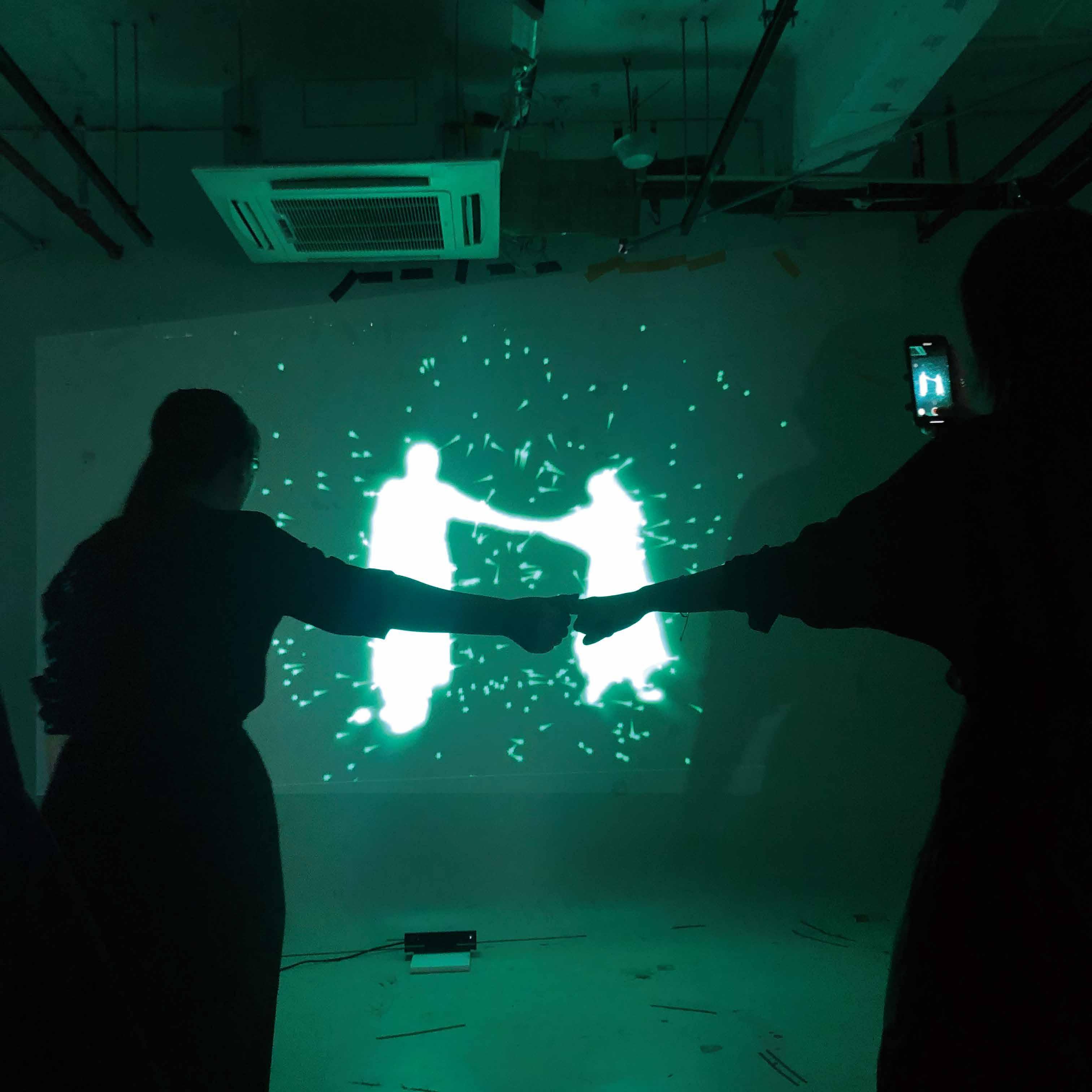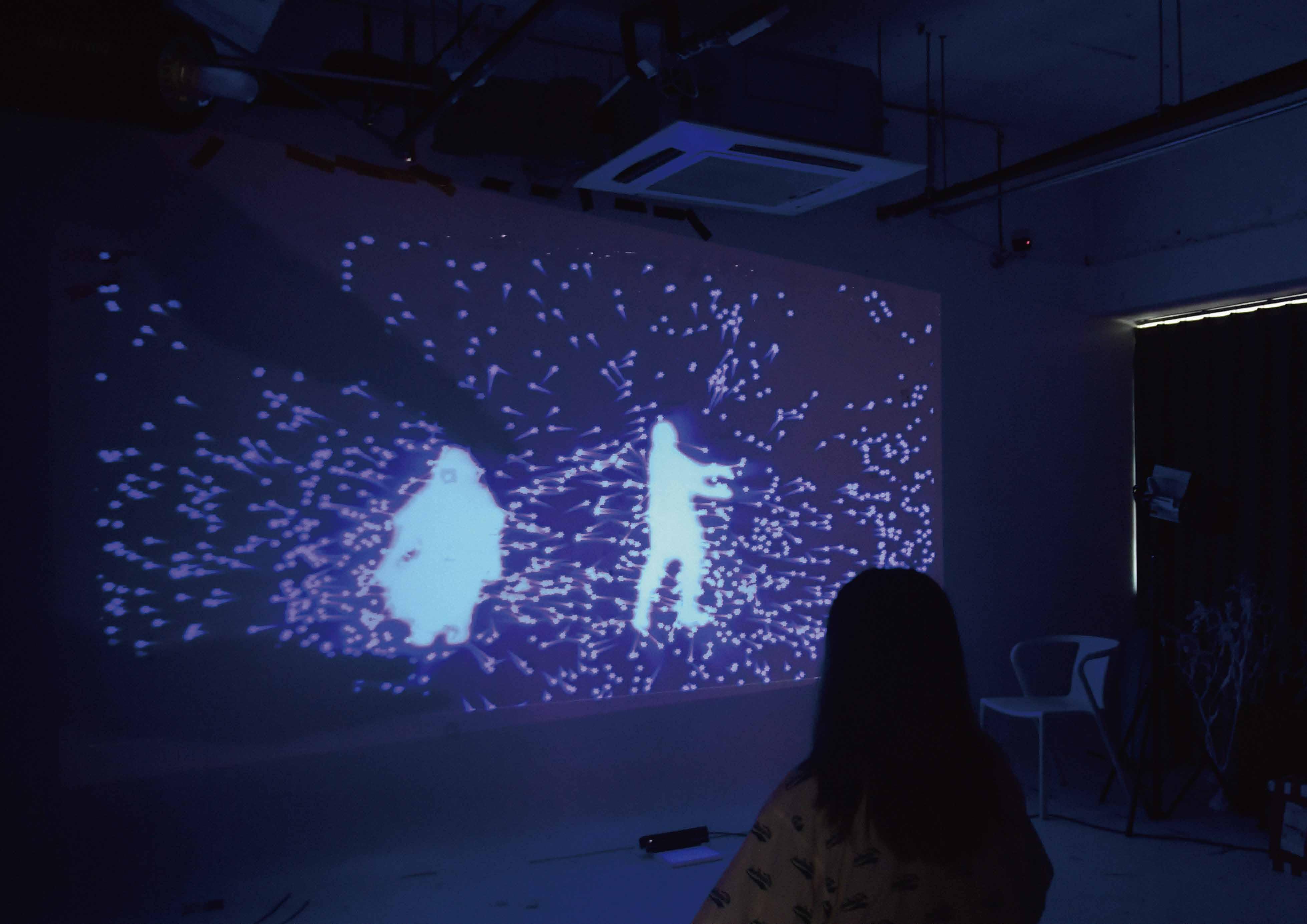 今回の作品で、Kinect V2 を使用し て観客の動きをキャプチャし、観 客の体の動きに合わせて映像が変 化します。 この映画は、私の経験