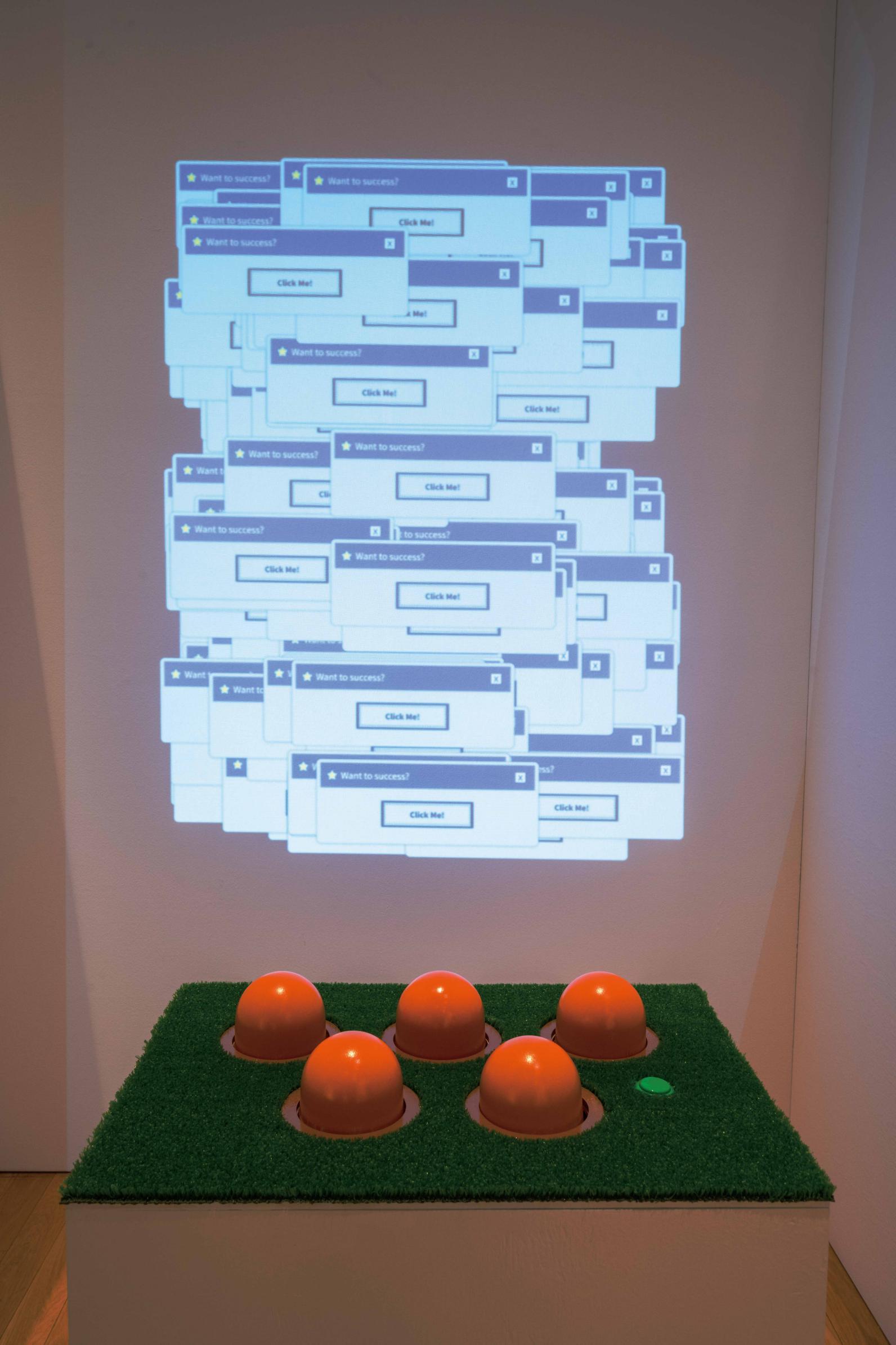 ポップアップ広告をはじめとする日々過剰化になりつつある情報 と、誰もが親しんでいるゲーム機という一見関係のない二つを結 びつけることで、インターネット、情報化と人間との関係性につい
