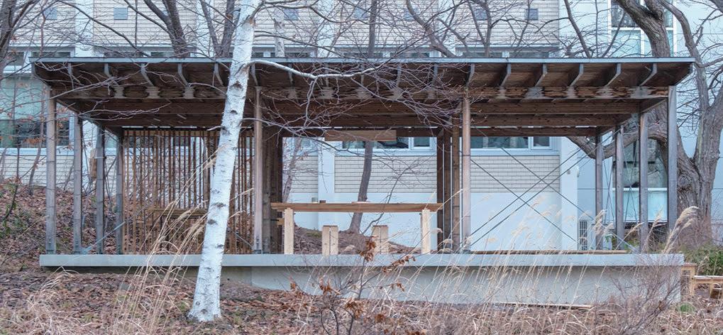 いる 8) 。木質化においても通常では一般流通材・間伐 材が利用されるが、本制作では芸術の森キ ャンパス で発生した伐採樹木を用いた木質化を試みる。