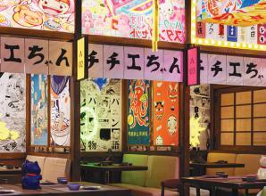 To enrich the Japanese ambiance, traditional elements like Japanese lanterns, Lucky Cat figures, partitions, Shoji screens, and Sakura trees are thoughtfully incorporated throughout the space.