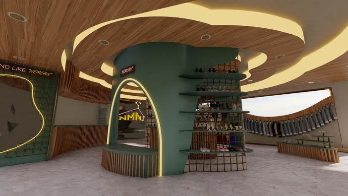 The design combination both different styles of the free form curve and the grid wall in order to make the contrast of each other, the unique style that represents the characteristic of the brand. Moreover, the using of green color and wood finishing give the jungle atmosphere, home of the lion relating to the name of the brand, NEMEAN lion.