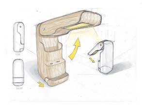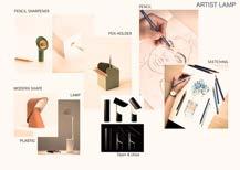 The artist lamp contains the artist supporting functions of pencil sharpener and pen holder hidden in it. Also this lamp has anopen-closefunctionforshowingandhidingthoseartistsupportingfunctionsinordertomakethemostconvenientand savethespace.
