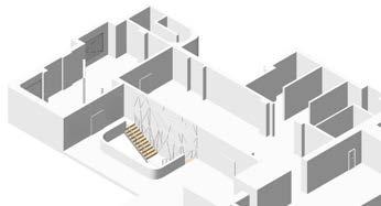 Reduce the size of the staircase and move the lift next to it for the reason of creating more spacesforthecafearea.