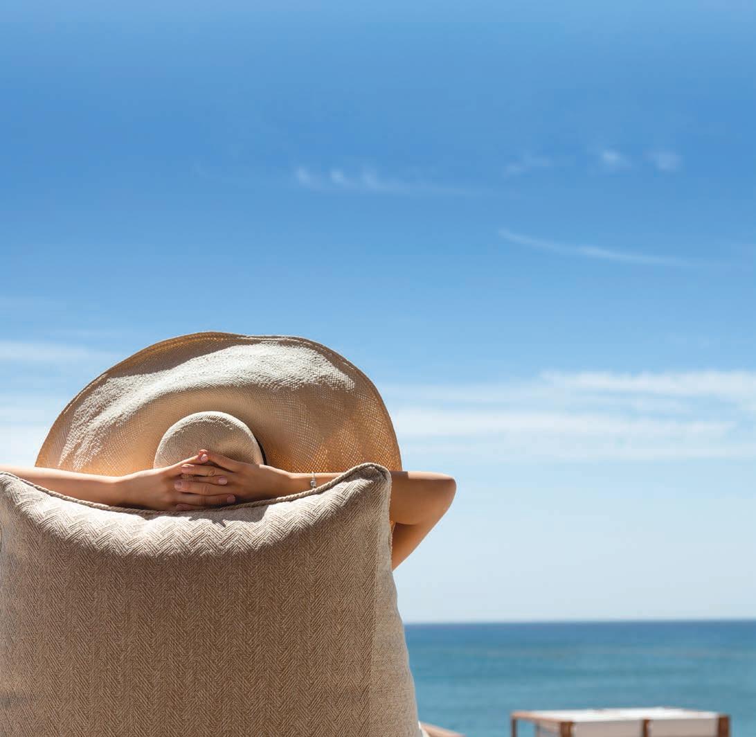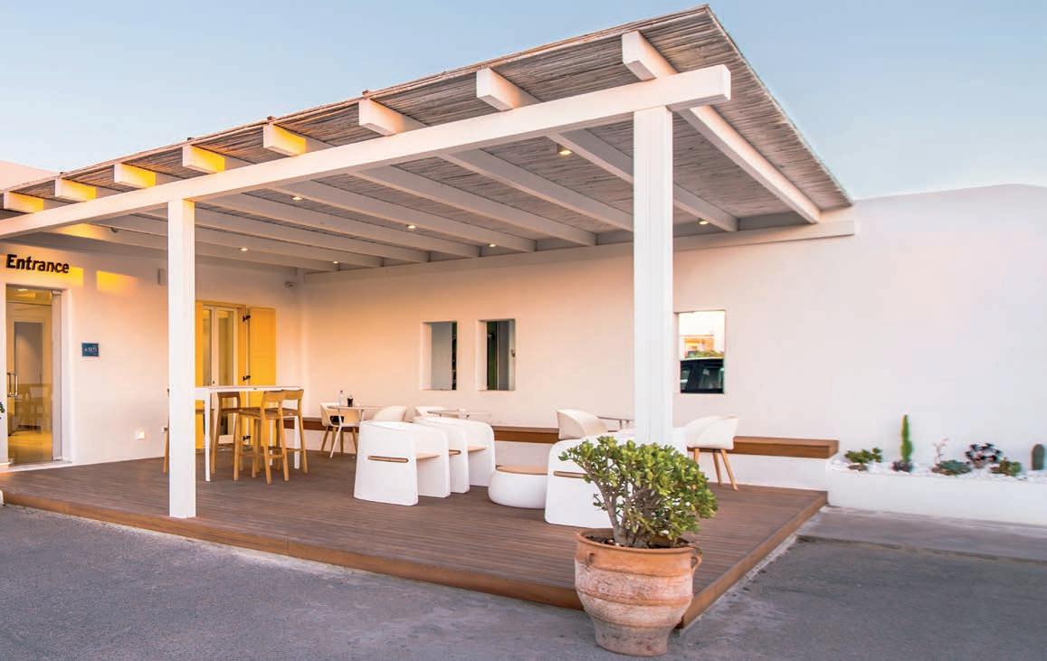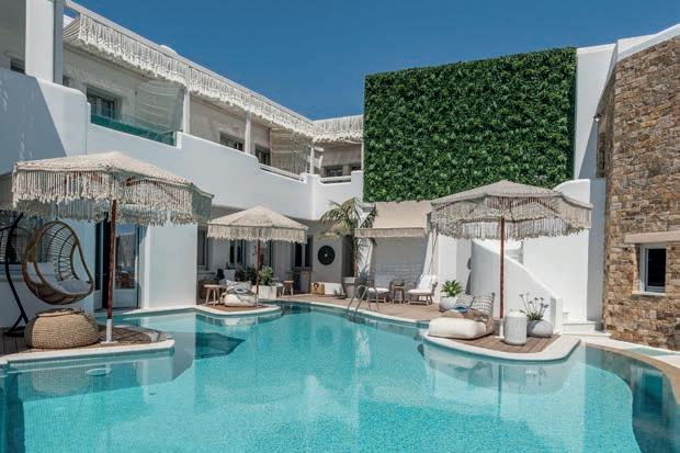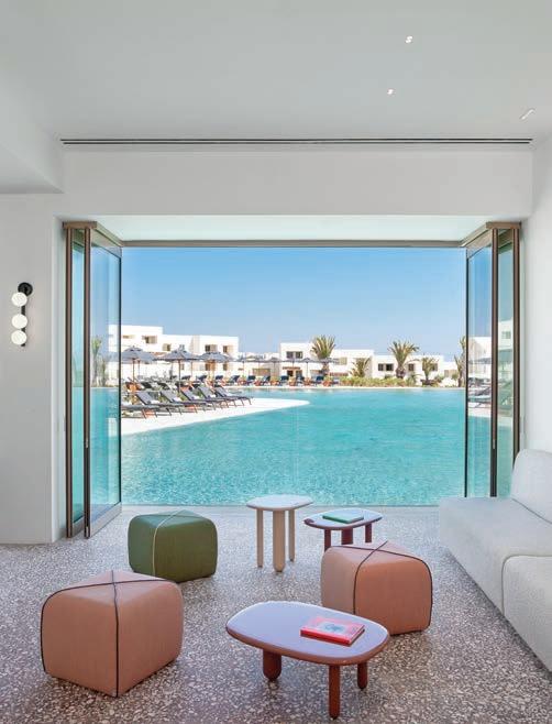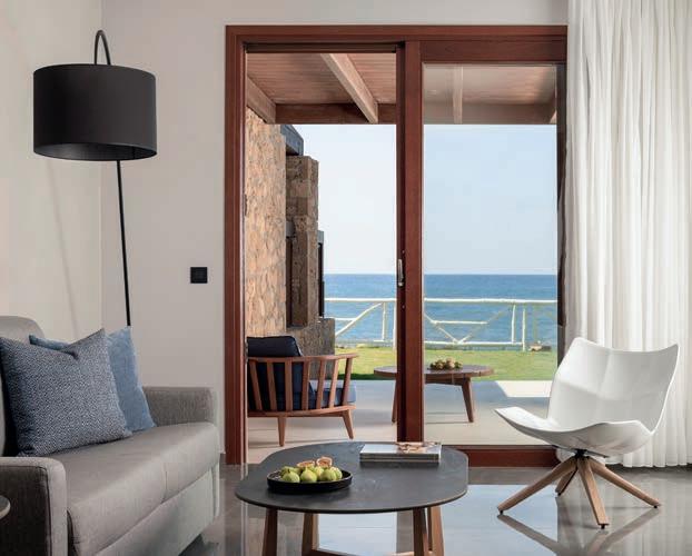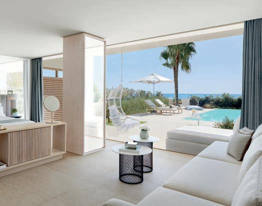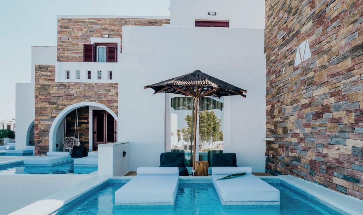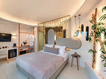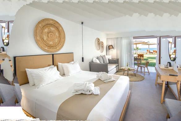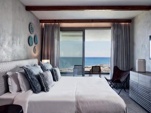 We believe in creating a dreamy accommodation experi ence for our visitors, which is why the minimalist light-co lor décor that carefully introduces local design elements represents the perfect backdrop to take in the beauty of the Cyclades’ largest and greenest island.