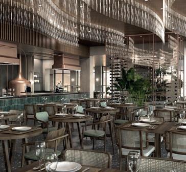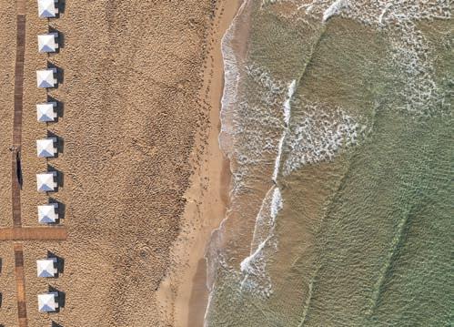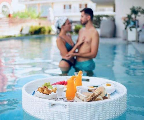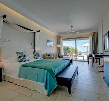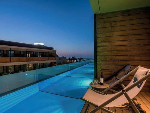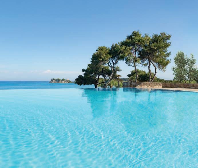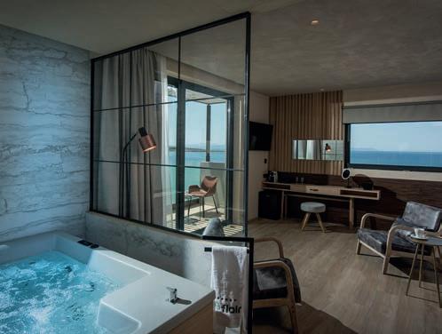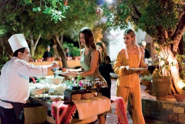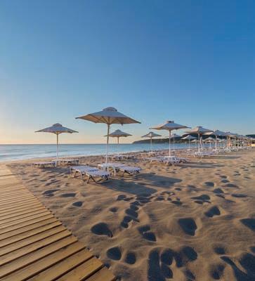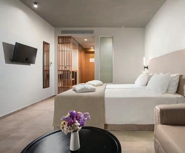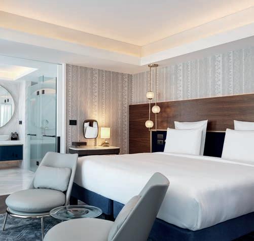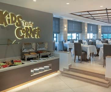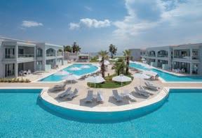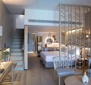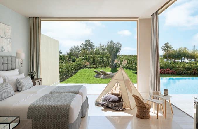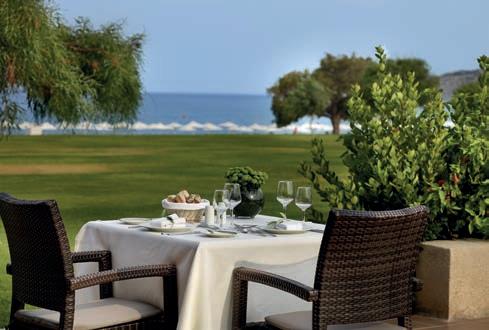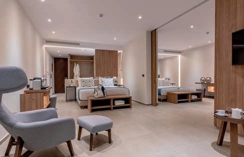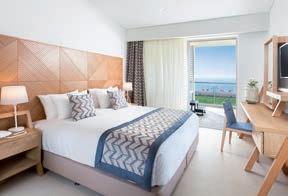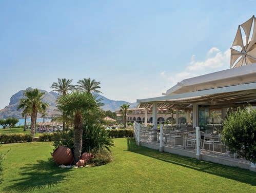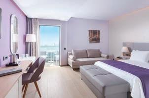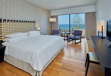 Radiating a family-inclusive mindset where visitors feel in stantly at home, the resort has a multi-generational quality that sees guests return year-after-year. Generously sized and with a high proportion of interconnecting options, the 401 gue strooms and suites, combine casual ease with Rhodian design. A soft color palette connects with nature through light wood flooring, woven headboards and tree-inspired wallcoverings. Each room comes with comfortable Signature Sheraton bed, framed by floor-to-ceiling windows and limitless sea views. Offering traditional cuisine, Sheraton Rhodes Resort fuses Grecian and cosmopolitan flavors with craftsmanship, ta lent and Aegean views. A shared culinary experience, L’Onda serves authentic Italian dishes in a terrace setting, where the seascape adds to the relaxed atmosphere. Fresh, local produce and homespun flavors are prepared at Thèa Restau rant, while casual, pool-side plates can be enjoyed at Medit teraneo, set within olive grove gardens. Serving buffet dining from morning ‘til late, Castellania Restaurant showcases a