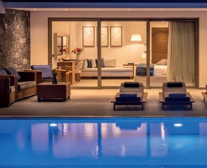 junior suites with or without Jacuzzi or private pool and execu tive suites with private pools.