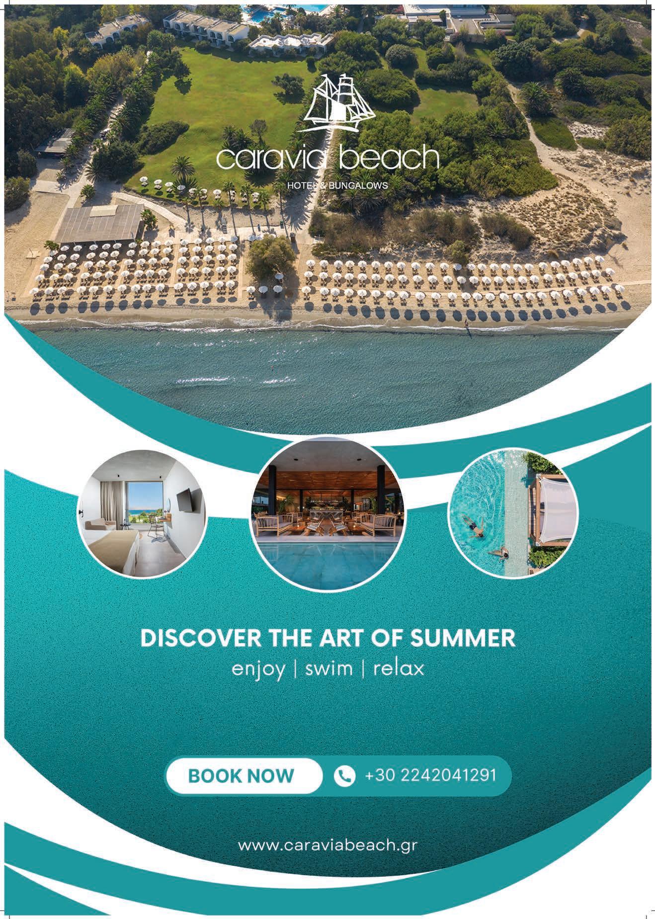 sports, walks and markets, but also distinctive tastes as it has a unique culinary tradition. At the same time, we are promo ting large-scale actions aiming at making Rhodes a pioneering model of sustainable tourism development on a global level. With this confidence that such success gives us, we continue with optimism for the next year as well. Our presence in the World Travel Market marks the effort to reach new levels in 2023, always with a smile, courtesy and quality of service to the guests who honor us with their choice. The invitation to our British friends is ongoing to either discover or relive the unique experience of Rhodesian hospitality.