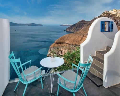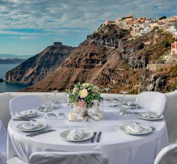 people, ideal for families, friends and couples. Finally, the unique and exclusive Royal Suite is actually a 140 square me- ters private villa in the hotel, with a large heated jacuzzi pool on the private balcony, rare and precious pieces of art and furniture for up to 6 people. All our suites are equipped with LCD Sat TVs 32” and 42” (or wider), desk, bluetooth speakers, tablet PCs, free wifi connec tion, telephone, laptop size safe box, mini-bar, ironing facilities, hairdryers, scales, beauty mirrors, fine Guy Laroche linens, towels and bathrobes for every guest, slippers, luxury Hermes or Guer lain cosmetics, pool towels and much more. The large infinity heated swimming pool on the cliff offers a unique experience swimming and enjoying all the view from Oia to Akrotiri, a pool to infinity with a bar in the water open all day until the sunset hours. The room service offers an extended menu with a wide list of drinks and food. Drinks are available 24 hours and our kitchen is open from 11:30 ‘till midnight. The Esperisma Bar-Re staurant which is located in the hotel’s upper balcony is open all day offering the most refreshing signature cocktails, serving some carefully selected dishes combined with a list of fine wines and champagnes especially during the sunset ‘till the late hours. Private candlelight dinner options are available on request for special occasions. Just ask for our special menus. The Aphrodite SPA in the hotel offers relaxation massages, treatments, body and face therapies, with a cave aesthetics and relaxed at- mosphe re. Athina Luxury Suites is the ideal location to have your dream wedding ceremony and venue facing an amazingly romantic sce nery or just to enjoy your honeymoon in our special Honeymoon Suites with outdoor jacuzzis. Our joy is to offer leisure and delight and to make the accommodation of every guest personalised, exclusive and unforgettable, emphasis- ing individuality and pri vacy. Our concierge and front desks are 24-hours open, to every demand and request, arranging VIP excursions, transfers, car rentals, yacht rentals, helicopter rides, private dinners and every other need or request for our loyal guests.