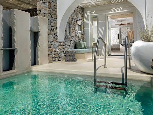 Just a few kilometers away from Mykonos Town, its 10 sui tes and 25 rooms invite guests to an exclusive vacation experience, comprising of high-end gastronomic choices and absolute rejuvenation and wellness moments (every room and every suite has its own hot tub or plunge pool), all set in one of the most beautiful locations on the Island of the Winds.