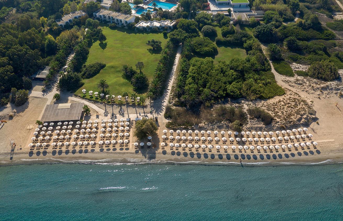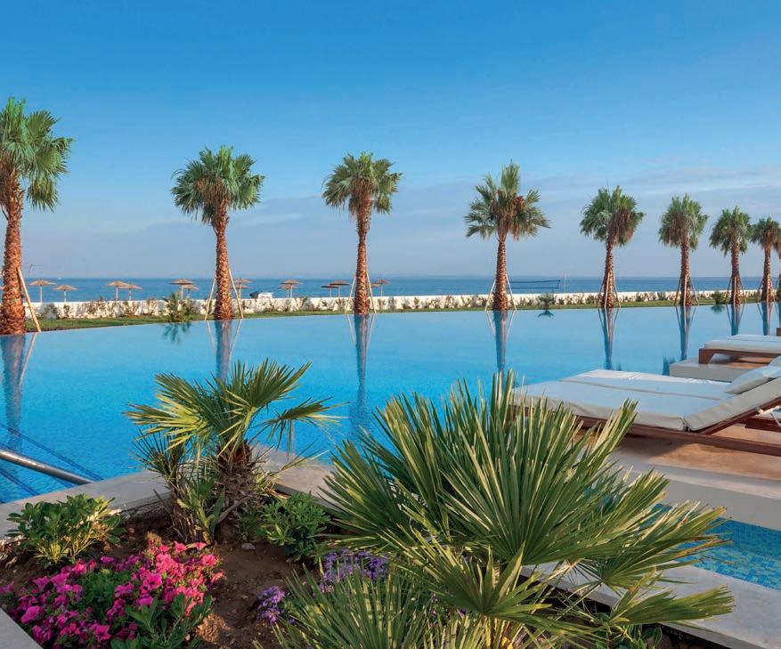 Gennadi Grand Resort is a modern and eco-friendly summer retreat that offers a tranquil holiday experience. Gennadi beach was chosen as the perfect spot for Gennadi Grand Resort, a destination that will change the way you view your summer holidays. A peaceful hideaway by the sea surrounded by beautiful gardens with palm trees in total harmony with its surroundings, Gennadi Grand Resort is as beautiful as it is graceful. This eco-friendly resort combines superb rooms and suites with fine dining proposals, entertainment, sports and wellness facilities in an environment of natural seaside beauty. At the same time, great attention was given to the hotel being eco-friendly, making sure that it conserves energy and water without compromising the guests’ experience. The hotel is located on Gennadi beach, perfect for swimming and water sports, near the homonymous picturesque village, on the southeast coast of Rhodes, halfway between the famous traditional village of Lindos and the south end of the island, Prasonisi.
