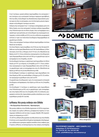 τερους σε σύγκριση µε το 2017. «Το 2019 η Lufthansa θα γιορτάσει την 60ή επέτειό της στην Ελλάδα. Η επέτειος αυτή σηµατοδοτεί 60 χρόνια προσφοράς ολοκληρωµέ-