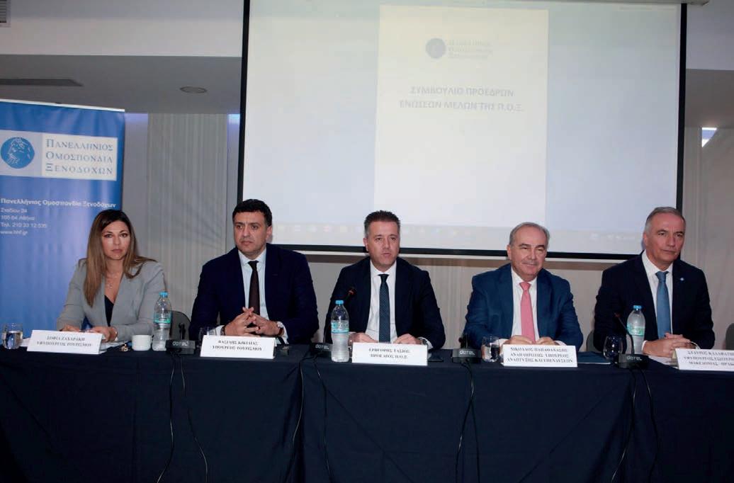 • Από τους ξενοδόχους που εφαρµόζουν ήδη τέτοιων ειδών στρατηγικές, πάνω από τα δύο τρίτα αισθάνονται σίγουροι ότι θα επωφεληθούν περισσότερο από αυτές το 2023. • Τα µείζονα θέµατα για τα ξενοδοχεία και τον ελληνικό Τουρισµό, έθεσαν στο πλαίσιο της άτυπης γενικής συνέλευσης των προέδρων της ΠΟΞ που πραγµατοποιήθηκε στο περιθώριο της εφετινής Philoxenia,ο πρόεδρος της ΠΟΞ Γρηγόρης Τάσιος, ο πρόεδρος του ΞΕΕ Αλέξανδρος Βασιλικός και 5 πρόεδροι ενώσεων ξενοδόχων.