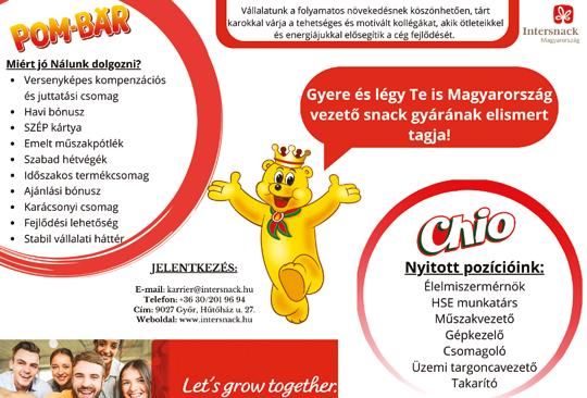 - Győr, Csorna, Tét, Pápa, Sopron, Fertőszentmiklósteljes (8 óra) és részmunkaidő (4 vagy 6 óra)