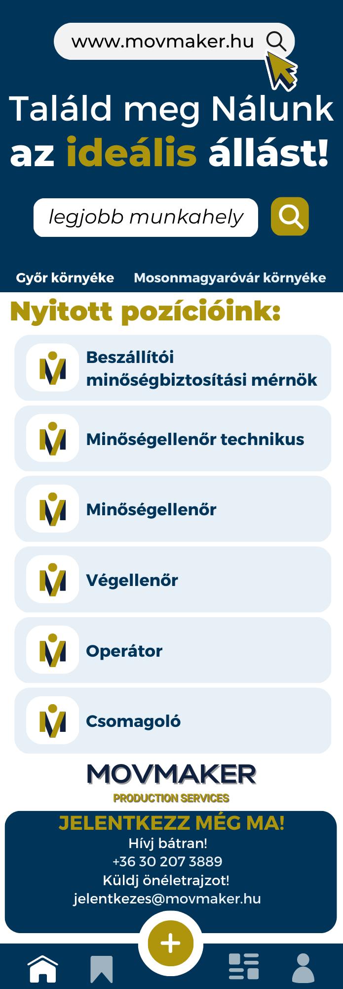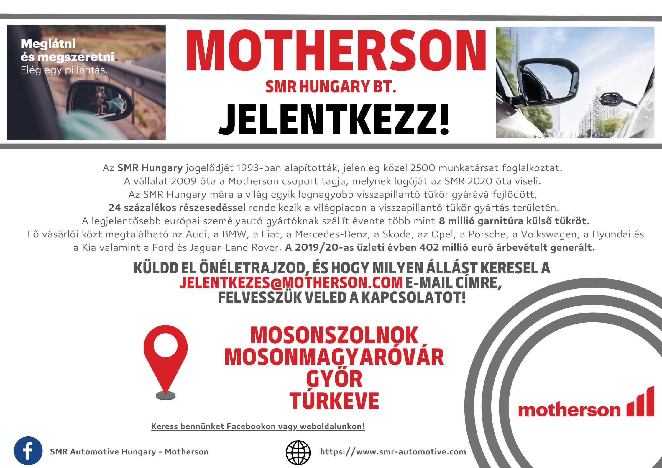 Munkavégzés helye: Győr vagy Sopron
