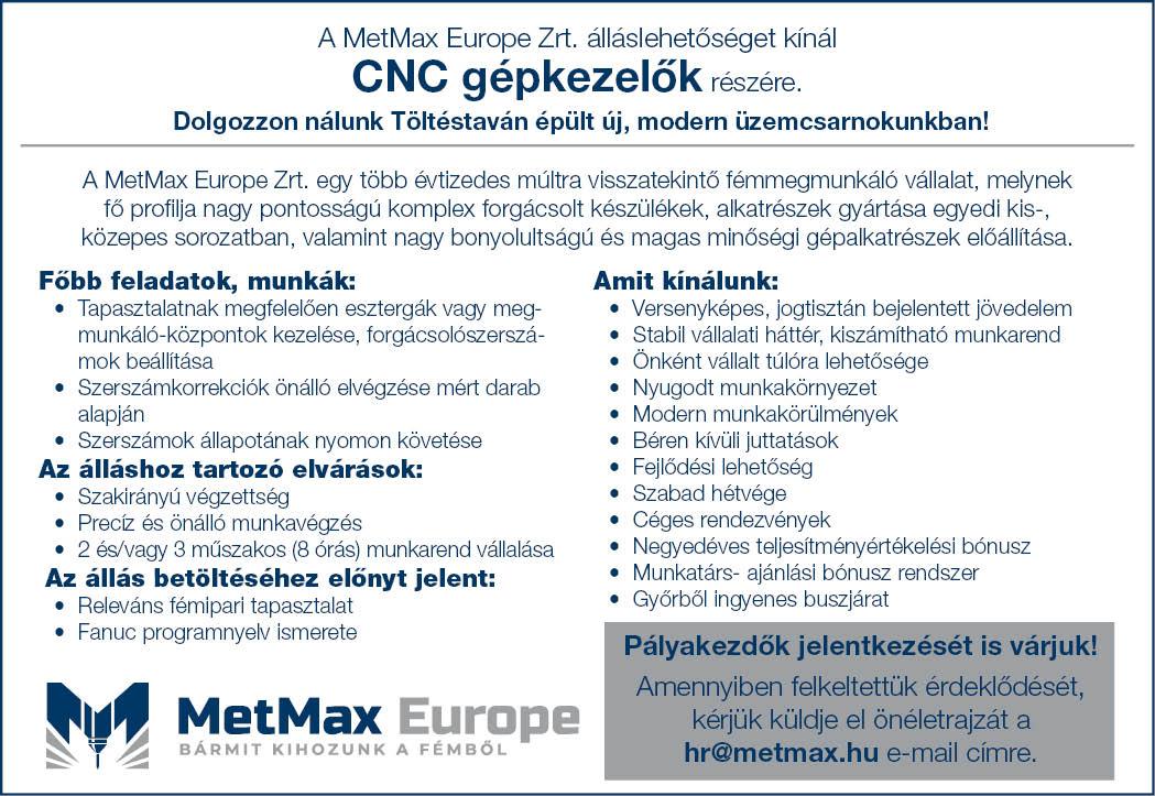Amennyiben hirdetésünk felkeltette érdeklődését, küldje el önéletrajzát elérhetőségeink valamelyikére: IPARTECHNIKA MENEDZSER KFT.
