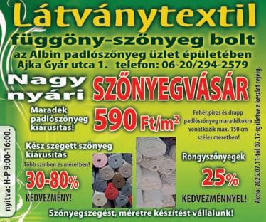 E-mail: szuperinfoajka@gmail.com www.szuperinfo.hu Nyomtatás: Comorn Lapmanager Kft. Terjeszti: Kézbesítő Kft. Az újságban megjelenő politikai vagy társadalmi célú hirdetések nem feltétlenül tükrözik a szerkesztőség vagy a kiadó véleményét.