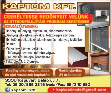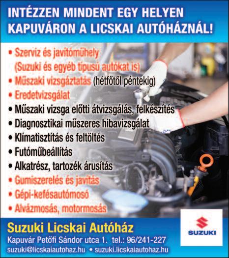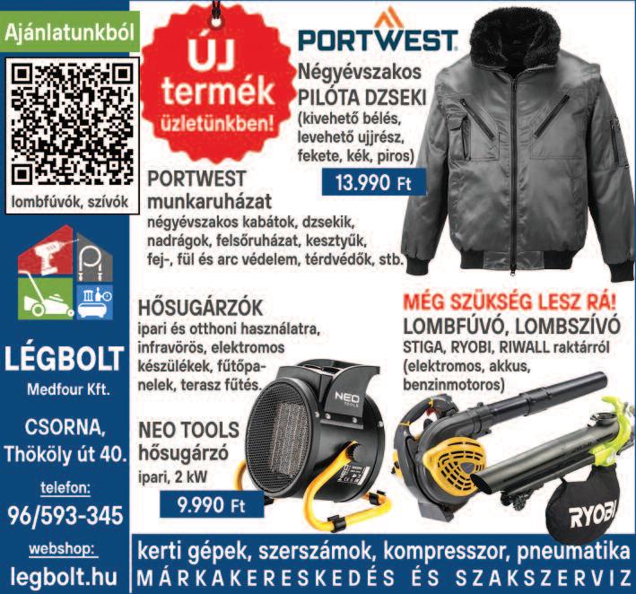 kiadó: INFOREKLÁM Kft 9300 Csorna, Kismar toni u 2/a; Telefon: +36 30 9370 651 Felelős kiadó, szerkesztő: Tárk ányi Mária ügyvezető Sokszorosítás: Comorn Lapmanager, Kiadó és Kereskedelmi Kft. Terjesztés: Hírlap Post 2020 Kft Szerkesztőség: 9300 Csorna, Kismar toni u. 2/a Tel: +36 309370 651, e -mail: csorna-kapuvar@szuperinfo.hu