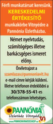 Megjelenik: Csorna, Kapuvár, Fer tőd, Fer tőszentmik lós, Beled városok ban és további 40 településen, 22 000 példányban Lapzár ta: - keretes hirdetések: kedd 12.00 óra, - apróhirdetések: szerda 12.00 óra