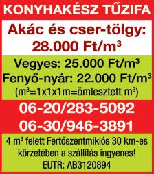 Tűzifa eladó Fertőszentmiklóson! Nyári vágású akác: 30 000 Ft/m3 (Erdőgazd kód:3700981) Tel : 0630/2167-635