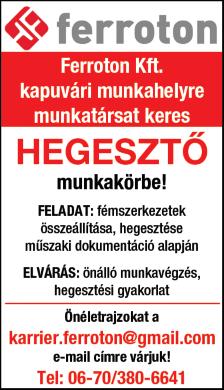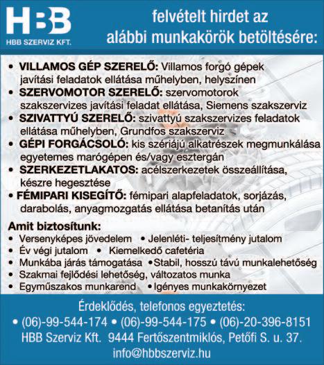 Ausztriába határközeli céghez keresünk karbantartót, lakatost, CNC forgácsolót. Alap német nyelvtudás szükséges Érd: +36 30 092 1848 Jómeló kft