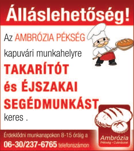 Petőházi benzinkútnál Fekete Párduc büfébe pultos hölgy munkatársat keresünk Másodállást vállalók jelen tkezését is várjuk Érdeklődni: 06 30/640 8774, 06 30/530 4462