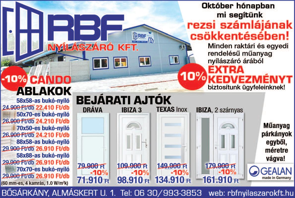 Munkaidőben: 0630/610 3850 www rbfnyilaszarokft hu, Bősárkány, Almáskert u 1 Új, építkezésből megmaradt és bon tott nyílászárók nagy választékban 600 db os raktárkészletről azonnal vi hetők! www hasznaltablak hu