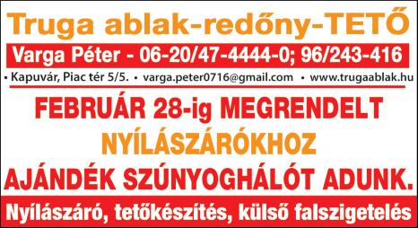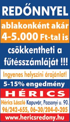 TUTIPUR! Szórt purhab szigetelés hőhíd nélkül tetőszerkezet-födémaljzat-lapostetõ-tartály-siló, gazdasági épületek, könnyűszerkezetes házak, medence szigetelése Hõ, hang és vízálló! Gyors és környezetbarát! Akár 70 %-os rezsicsökkenés! Érd : 06 30 226 4185 Hőkamerás vizsgálat Villamos felülvizsgálatok Energetikai Tanúsítás Tel.: 30/9564-771 www szaboenergetika hu Redőnyök, reluxák, szalagfüggönyök, napellenzők, szúnyoghálók, harmonika ajtók, párkányok, zsaluziák stb, kedvezménnyel, garanciával, rövid szállítási határidővel 2001 óta a Megyében! Ingyenes kiszállás, árajánlat Tel: 06 30 235-0927 Horváth