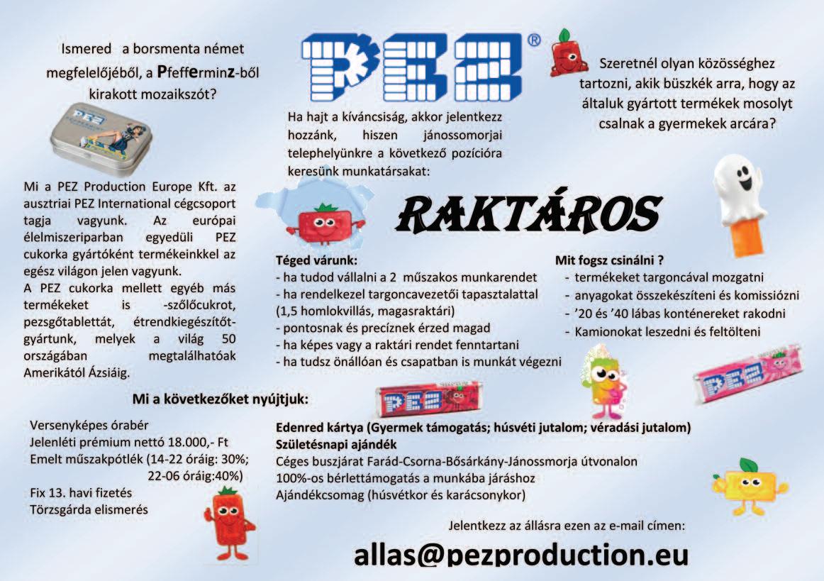 Az újságban megjelenő politik ai vagy társadalmi célú hirdetések nem tükrözik a szerkesztőség vagy a kiadó véleményét. Kiadó a hirdetések tar talmáér t, azok valódiságáér t, harmadik személynek okozott jogsérelemér t felelősséget nem vállal.