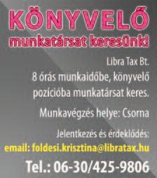 Lapzár ta: keretes hirdetések: kedd 12 00 óra, apróhirdetések: szerda 12 00 óra Szerkesztőség, hirdetésfelvétel: 9300 Csorna, Arany J u 5 Tel /Fax: 96/260-176