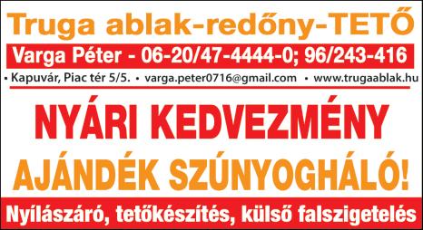 Redőnyök, reluxák, szalagfüggönyök, napellenzők, szúnyoghálók, harmonika ajtók, párkányok, zsaluziák stb, kedvezménnyel, garanciával, rövid szállítási határidővel 2001 óta a Megyében! Ingyenes kiszállás, árajánlat Tel: 06 30 235-0927 Horváth Attila www redonyosattila hu Varga kárpittisztítás! Ülőgarnitúrák, kanapék, fotelok, székek, matracok, autókárpit, szőnyegek tisztítása. 0630/9869-672