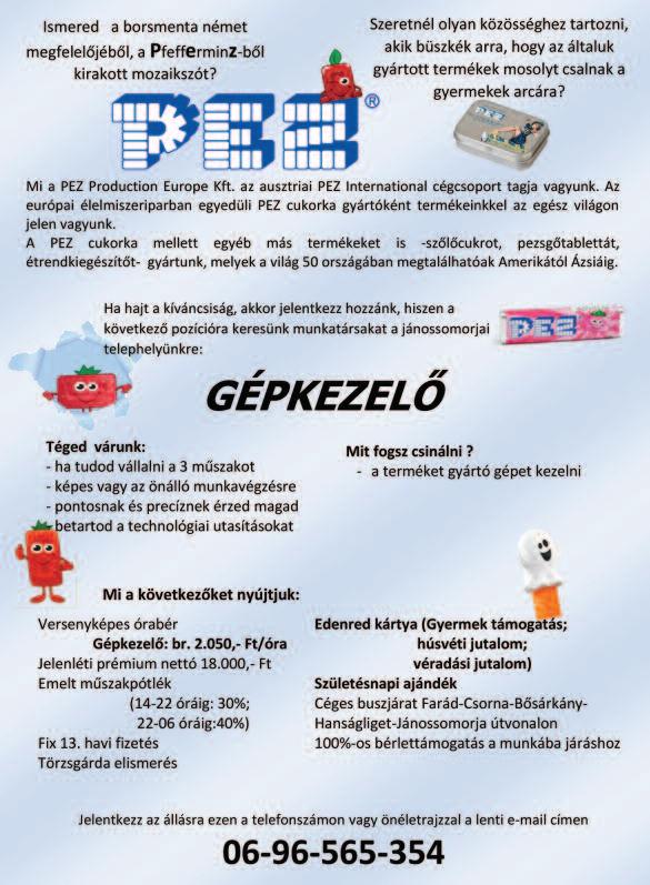 Az újságban megjelenő politik ai vagy társadalmi célú hirdetések nem tükrözik a szerkesztőség vagy a kiadó véleményét. Kiadó a hirdetések tar talmáér t, azok valódiságáér t, harmadik személynek okozott jogsérelemér t felelősséget nem vállal.