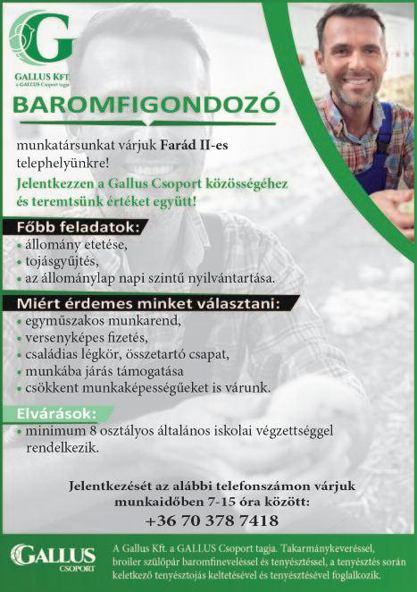 Baromfitelepre napi 4 vagy 8 órás férfi munkatársat keresünk Babótra Tel : 06 70 3373 514 Vörös Ádám ev