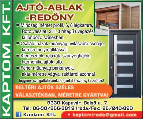 Ajtó- ablak beépítéshez keresek segédmunkást Kapuvár és környékéről. Építőiparban szerzett tapasztalat és B kategóriás jogosítvány előny Németh János 0620/456-2764