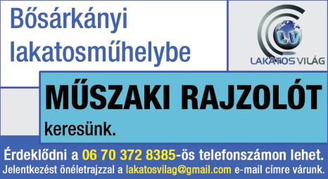 Kapuvári munkahelyre asztalost vagy asztalosságban jártas férfi munkaerőt keresünk 06-70/3102462 NM Bútor