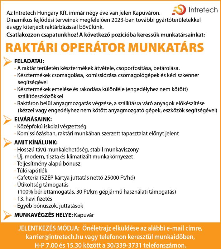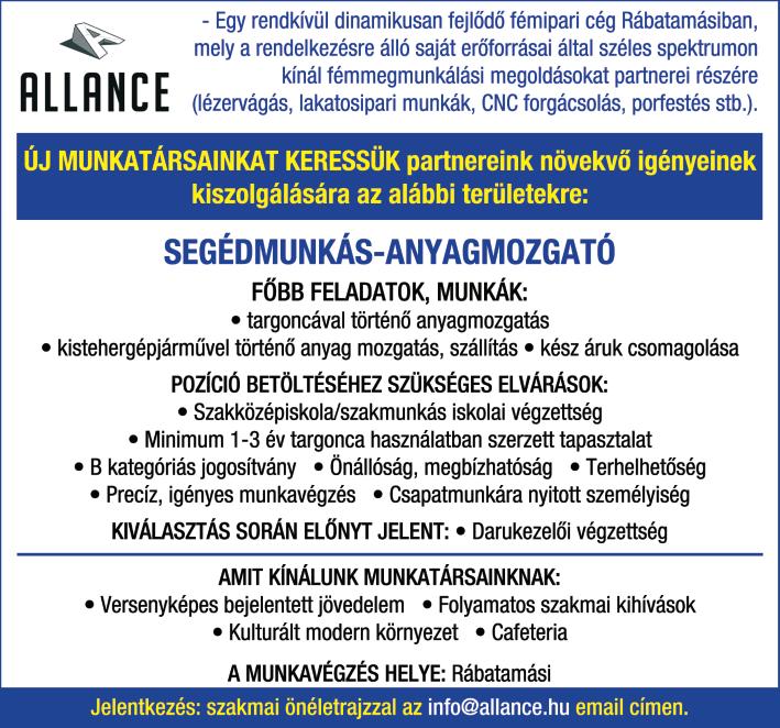 Kapuvári kőfaragó üzem 1 fő munkatársat keres, B kat jogosítvány előny Tel : 06-30/2403809 Família Filó Kft
