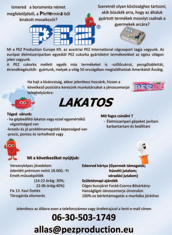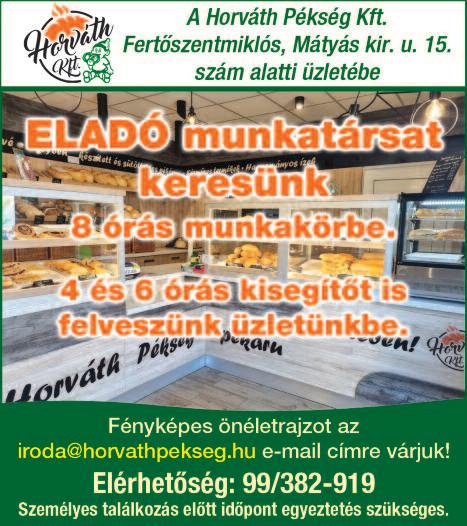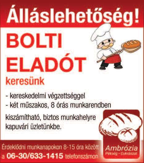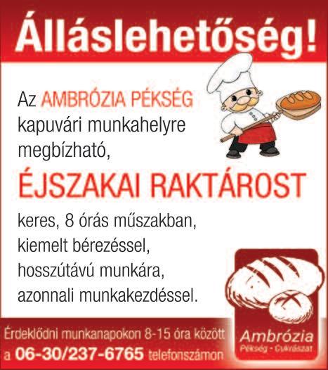 Csornán Nemes Pékség felvételt hirdet pék szakmunkás ill gyakorlattal rendelkező pék munkakörbe 0630/9277-834