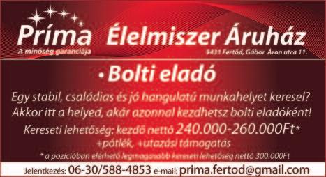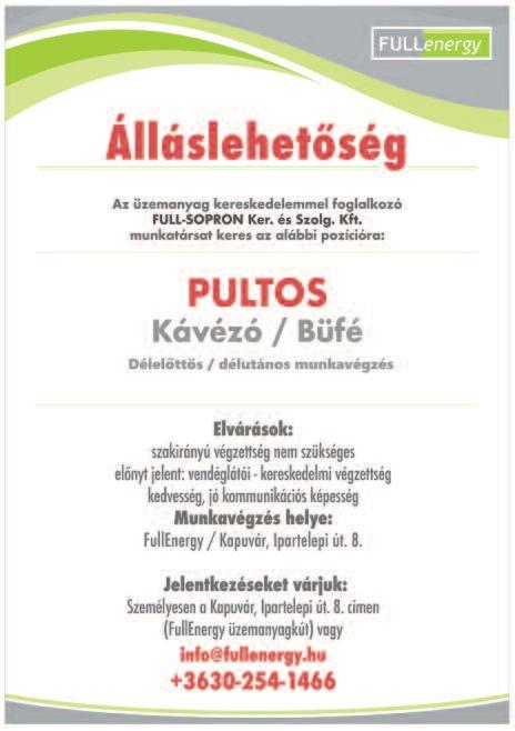 Gyorséttermi büfébe tapasztalattal rendelkező, megbízható, talpraesett, kommunikatív munkatársat keresünk Roni falatozó Kapuvár 0670/933-2219