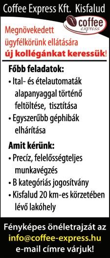 Kapuvári Jam étterem hétvégi munkára felszolgálót keres Ételfutárt felveszünk, munkavégzés hétfőtől péntekig (hétvége szabad)! Érd : 0630/215-8577